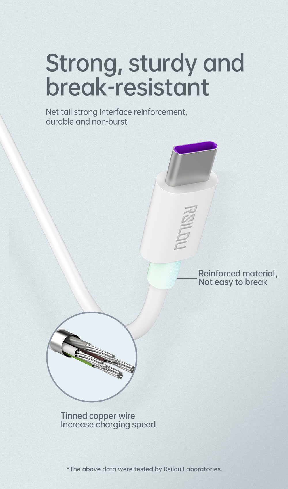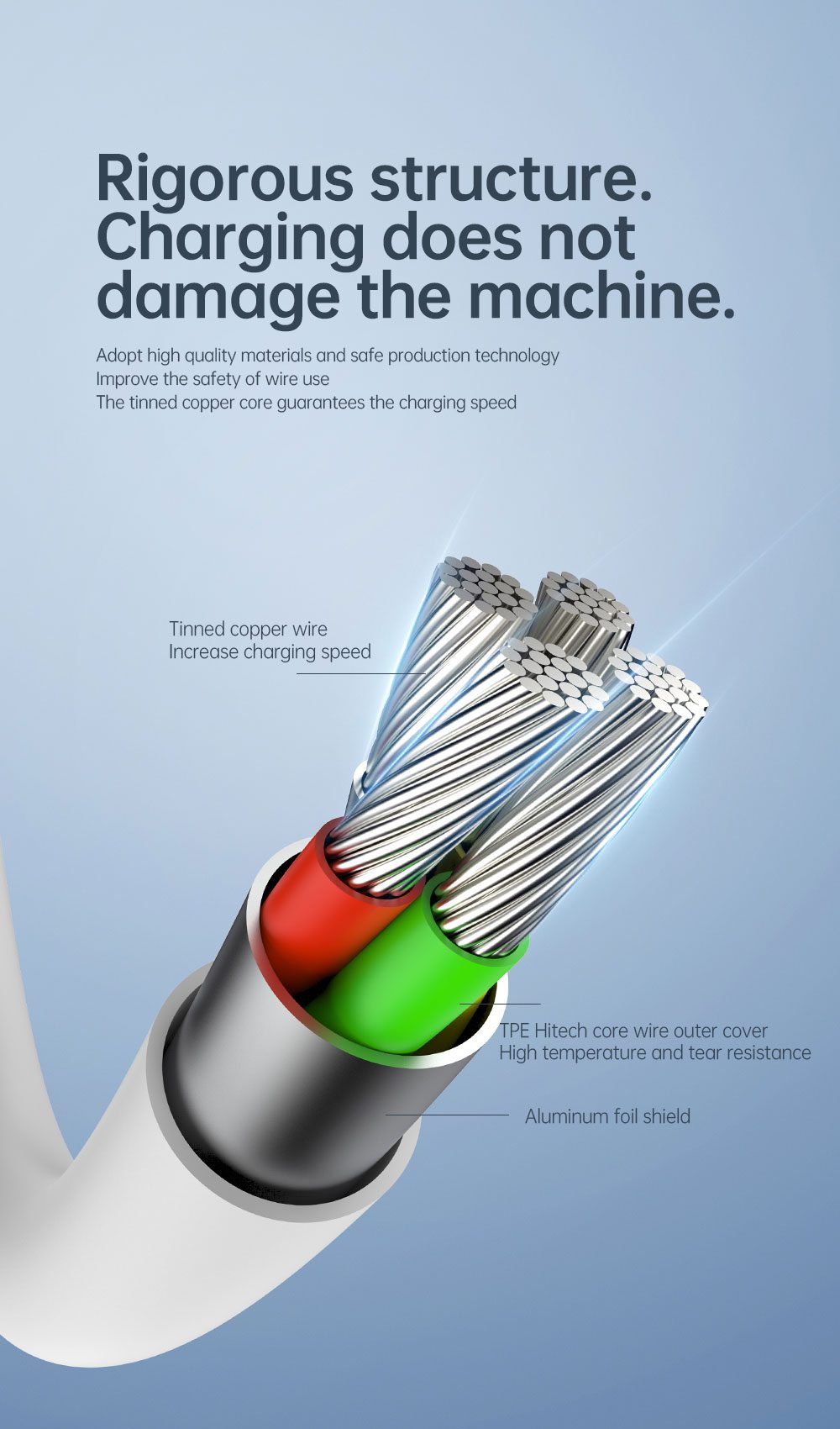 Durable Reinforced Design Made with Tin-Plated Copper Core and TPE outer material for improved durability and longer cable lifespan.