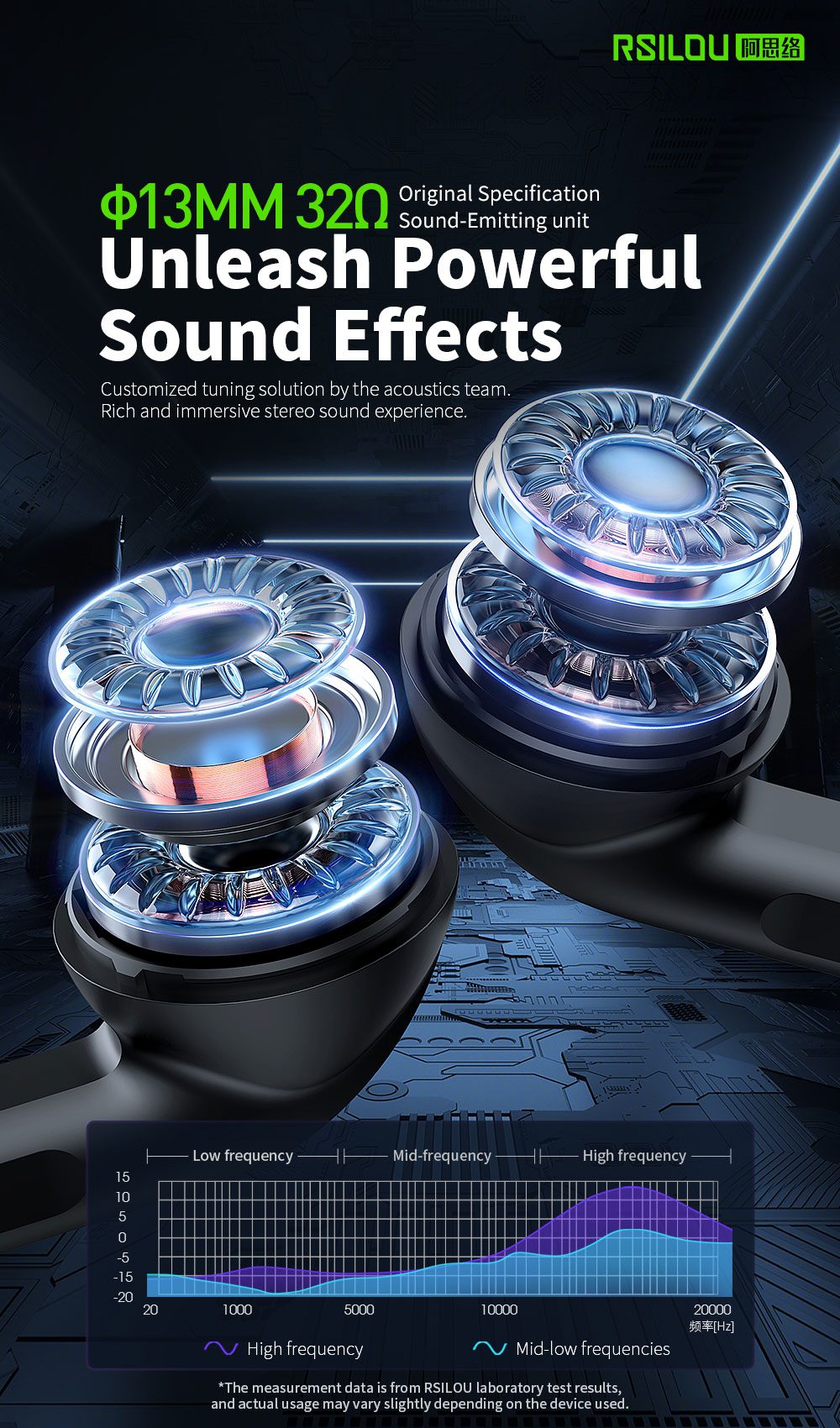 High-Fidelity Sound with Immersive 3D Audio The RSILOU TWS Earbuds are custom-tuned to deliver high-fidelity sound and immersive 3D audio effects. Enjoy rich bass, crisp mids, and clear highs, making every song, podcast, or movie come to life. The 13mm dynamic driver ensures a balanced and powerful audio experience.