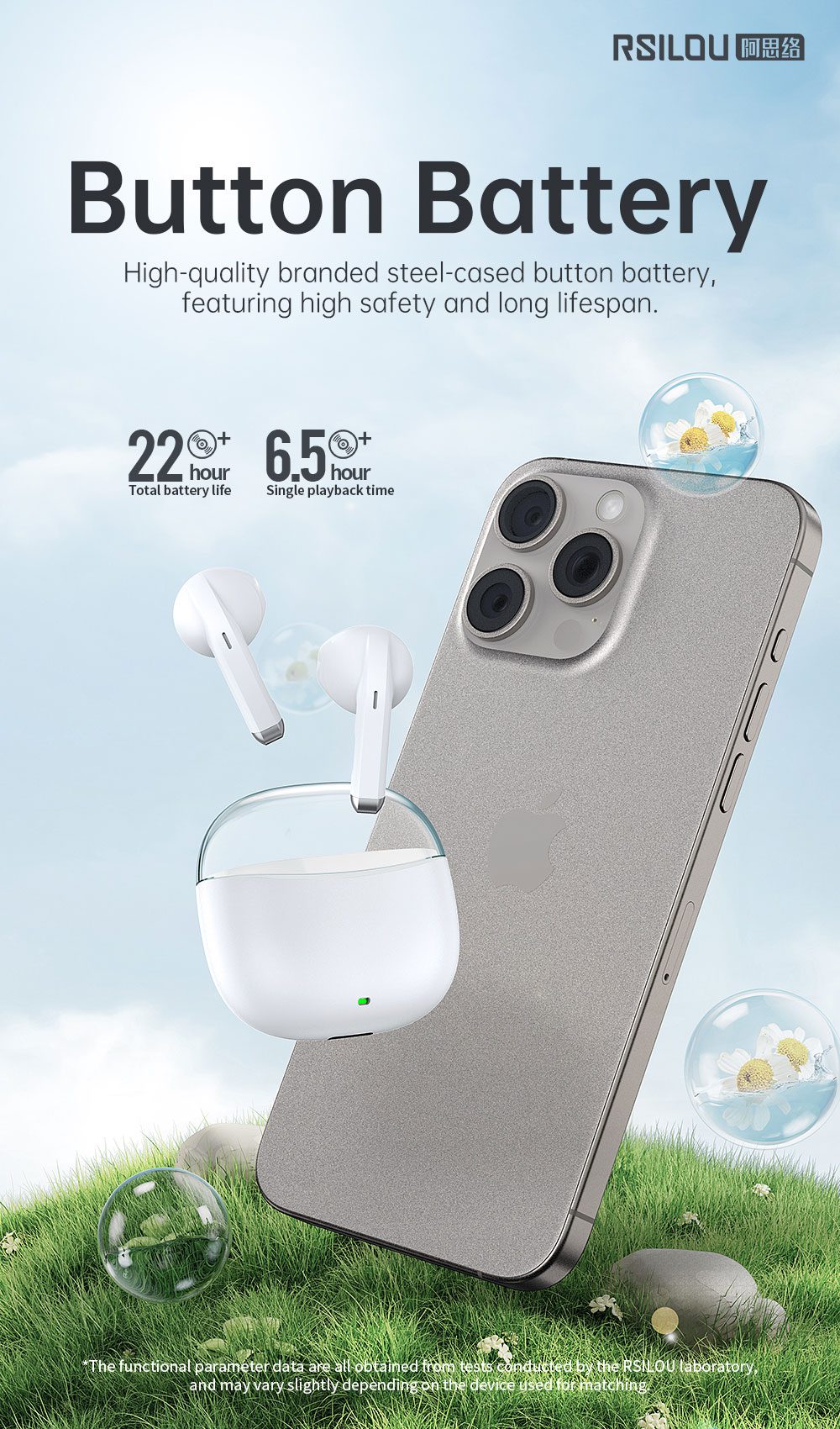 Why Choose RSILOU TWS Bluetooth Earbuds? Immersive Sound: Custom-tuned for high-fidelity audio and 3D sound effects. Long Battery Life: Steel button battery for longer-lasting performance and fast charging. Portable Design: Mini space case for easy carrying and additional charges. Touch Controls: Intuitive controls for music, calls, and voice assistants. Stable Connectivity: Bluetooth 5.1 for seamless wireless performance. Comfortable Fit: Lightweight and ergonomic design for all-day wear.