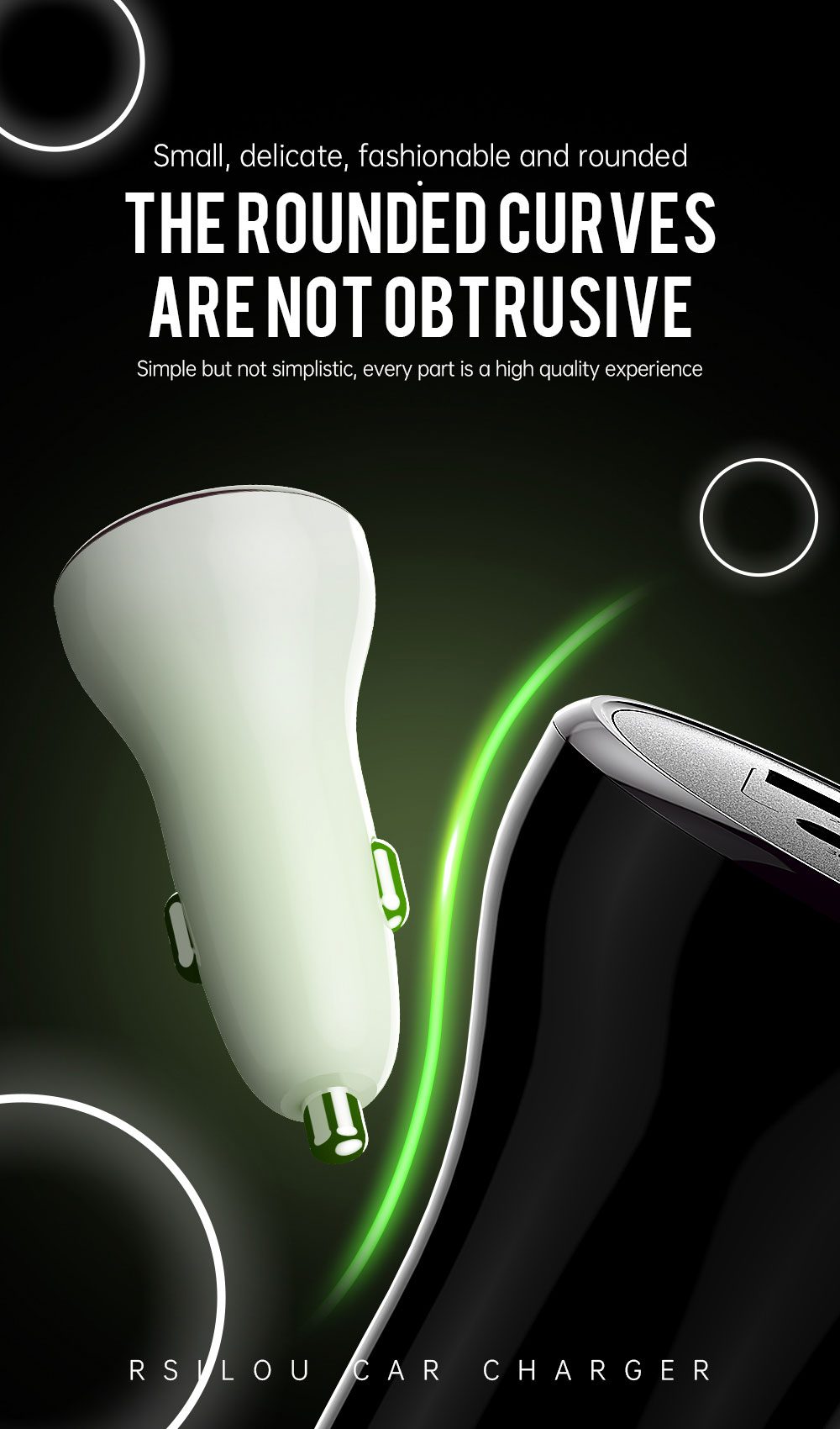 Rsilou R4505-001 Car Charger 20W PD Fast Charger, Power, Style, and Reliability in One, premium charging solution designed and durability, dual-port USB-A and USB-C, Quad protection | 12 month local warranty